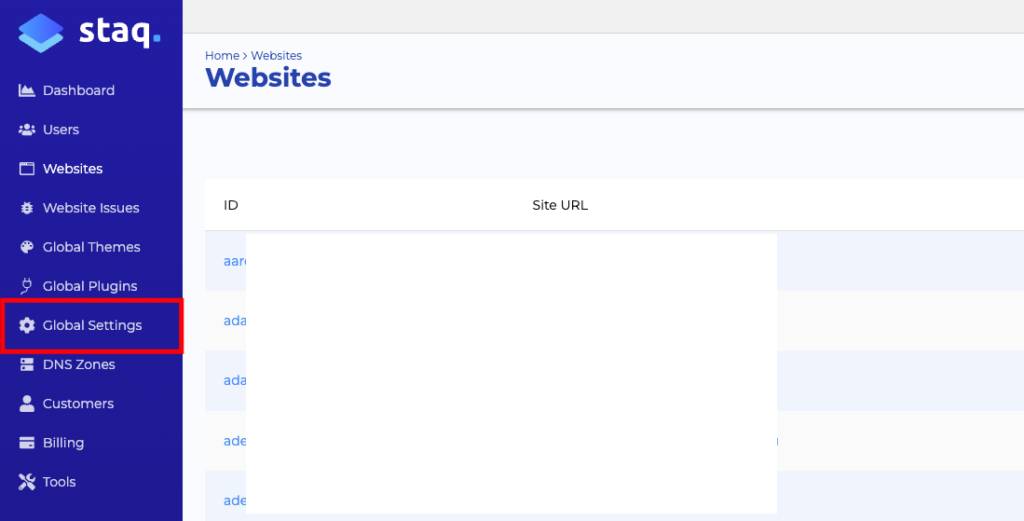 In the main navigation section, click Global Settings: