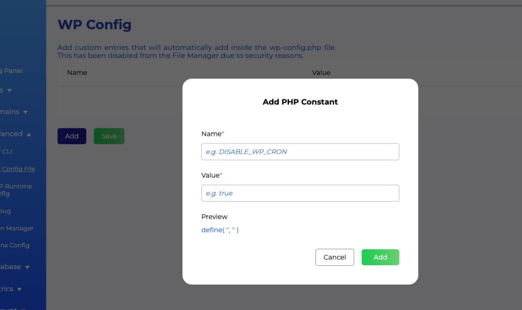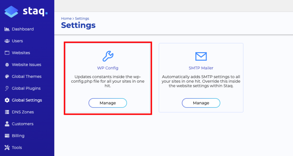 In Staq, you can add a PHP constant inside the wp-config.php on an individual website level or apply it globally to all your sites including all existing and future websites.