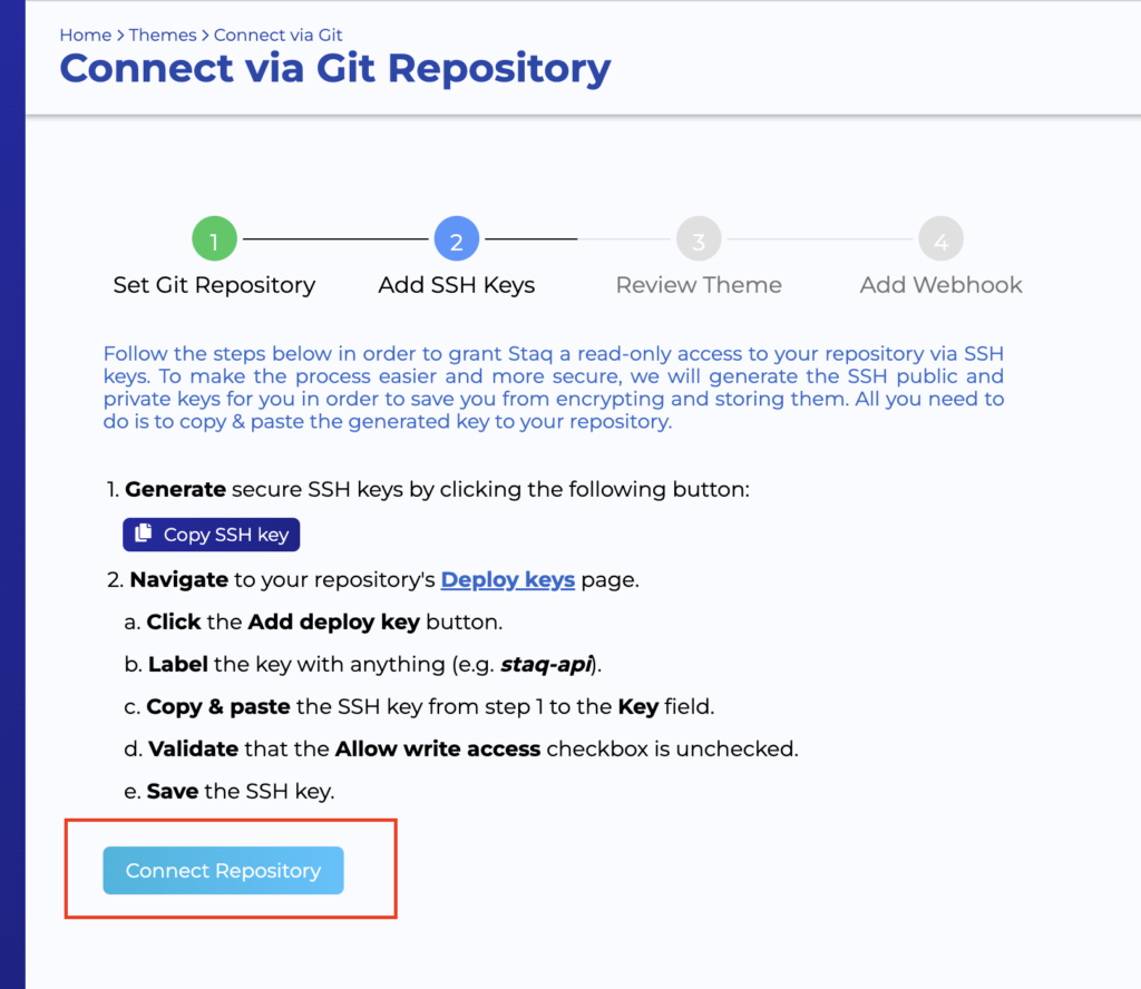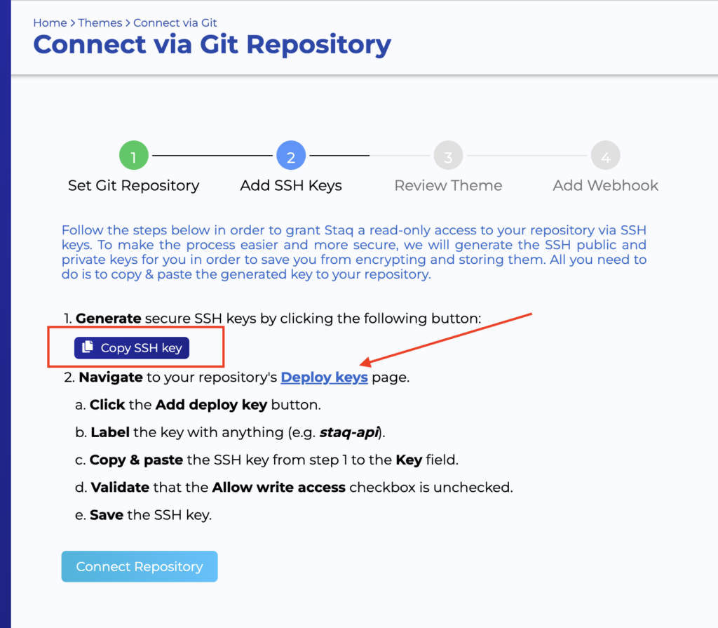 Go back to the Staq page and click Connect Repository: