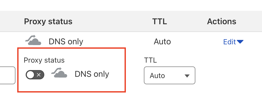 - If you’re using Cloudflare as the DNS, make sure the proxy/alias feature is disabled unless you apply the Staq-Cloudflare integration for you to enable proxy. See below.