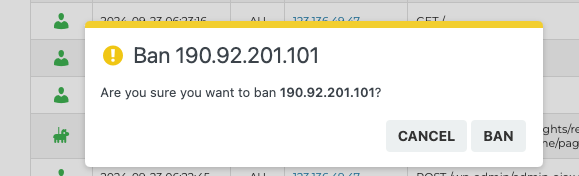 If you spot an IP address in the list that you want to block, click the cross button to ban it: