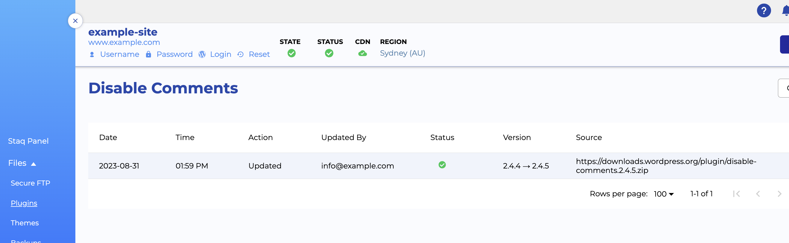 Below is to view how plugin updates went inside the Staq Panel of a particular website.