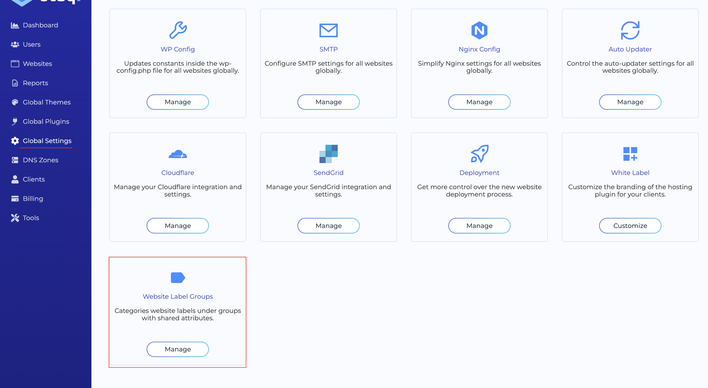 Navigate to the Global Settings and click on Website Label Groups: