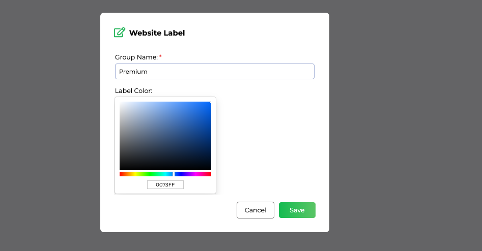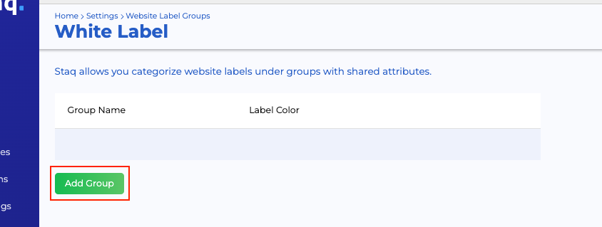 On the Website Label Groups page, click Add Group. You can create as many label groups as needed: